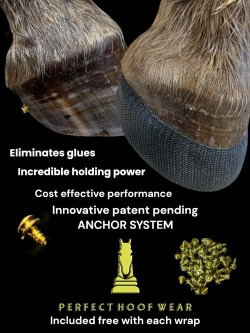 The Flexible, Breathable, Durable Hoof Wear! Sold in PAIRS! Note: Curing Pad (reusable) is highly recommended for “perfect” custom fit. Ideal for transitioning to barefoot or as an alternative from expensive glue on shoes. Each wrap Includes Anchoring System, requires NO glue! Out performs glue-on applications and does it at no additional cost!